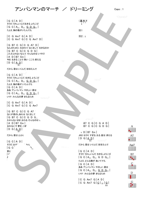 楽譜 アンパンマンのマーチ ドリーミング ギター コード譜 Joysound 楽譜 Elise